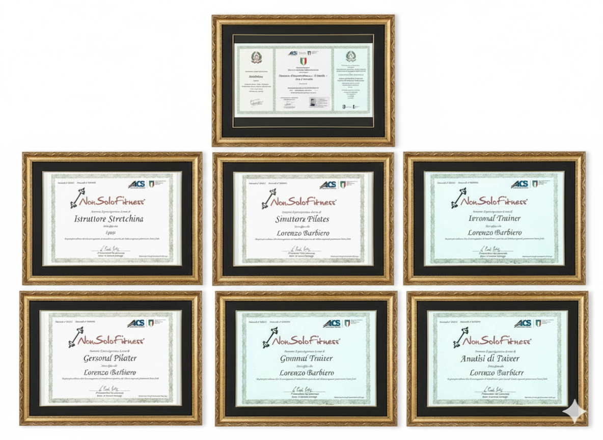 Ha una formazione professionale come personal trainer, inclusa formazione con NonSoloFitness, una delle principali scuole italiane di preparazione per istruttori e coach nel settore fitness.